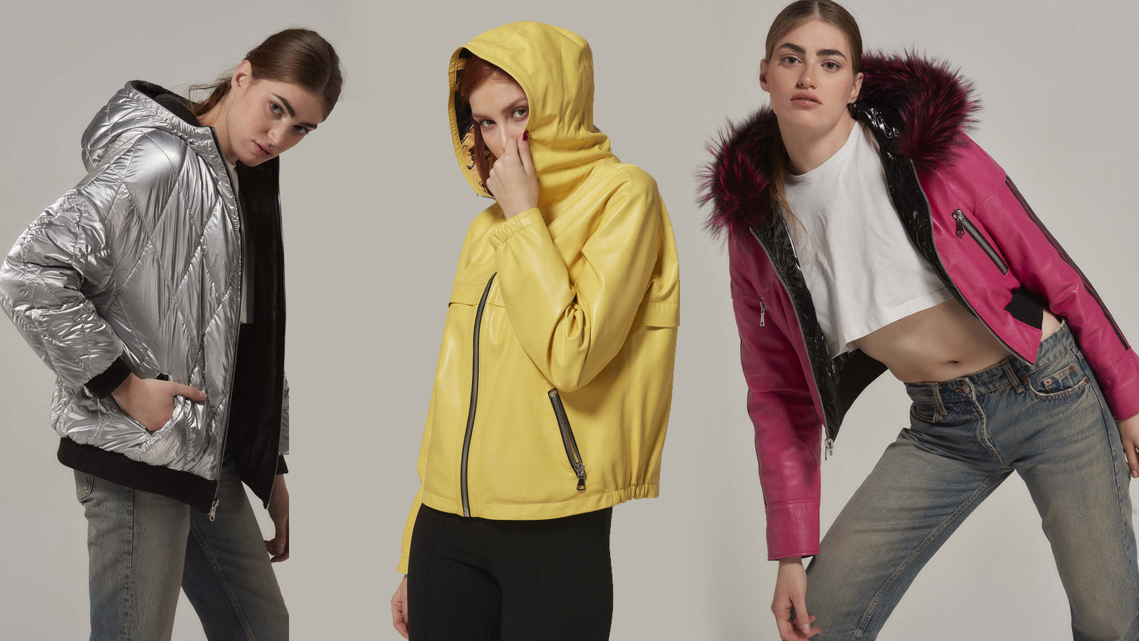 Navy Blue Leather to Black Suede Gradient Fox Fur Hood Jacket